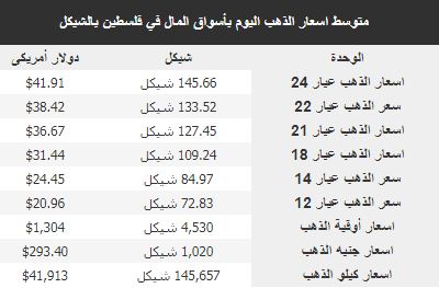 رام الله  - الاقتصادي - جاءت اسعار غرام الذهب اليوم في فلسطين لعيارات 18.21.22.24 على النحو التالي :-