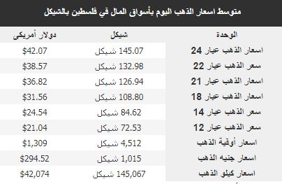 رام الله - الاقتصادي - جاءت اسعار غرام الذهب اليوم في فلسطين لعيارات 18.21.22.24 على النحو التالي :-