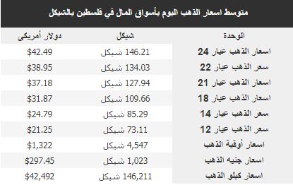 رام الله - الاقتصادي - جاءت اسعار غرام الذهب اليوم في فلسطين لعيارات 18.21.22.24 على النحو التالي :-