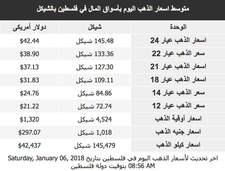 رام الله - متابعة الاقتصادي - جاءت أسعار الذهب في السوق الفلسطينية وفق أسعار اليوم السبت، على النحو التالي:
