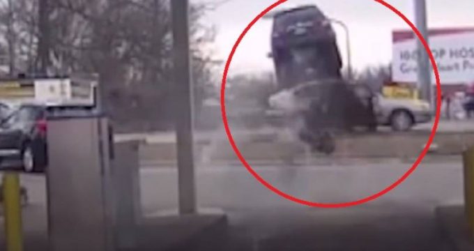 وكالات - الاقتصادي - فقد سائق السيطرة على سيارته في روكفورد بالولايات المتحدة وانتهى الأمر بتحلقيها فوق سيارة أخرى وهبوطها في موقف للسيارات.