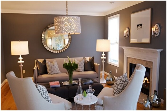5- إضافة المزيد من الأجواء الحميمية على ديكور غرفة المعيشة، من خلال مشتقات اللون البني والإضاءة والمرايا.