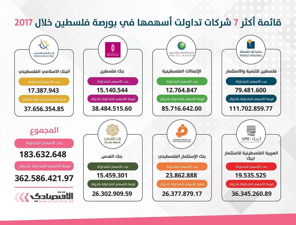 والشركات السبع، هي: شركة فلسطين للتنمية والاستثمار (باديكو)، والاتصالات الفلسطينية، وبنك فلسطين، والبنك الإسلامي الفلسطيني، والشركة العربية الفلسطينية للاستثمار (أيبك)، وبنك الاستثمار الفلسطيني، وبنك القدس.