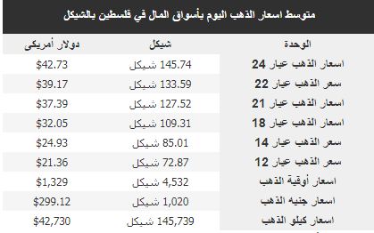 رام الله - متابعة الاقتصادي - جاءت أسعار الذهب في السوق الفلسطينية وفق أسعار اليوم الجمعة، على النحو التالي:
