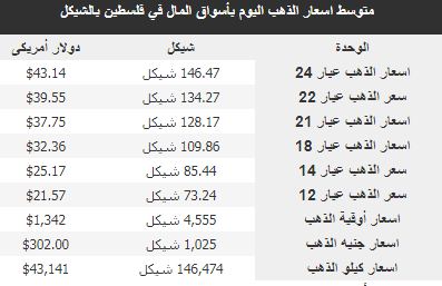 رام الله - الاقتصادي - جاءت أسعار غرام الذهب في فلسطين اليوم الثلاثاء، لعيارات 18.21.22.24 على النحو التالي: