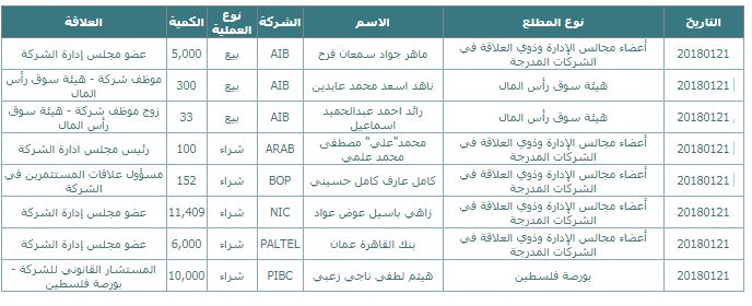 8 صفقات في تداولات المطلعين ببورصة فلسطين اليوم الأحد