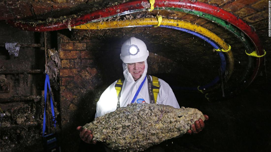 وتم اكتشاف الكتلة الدهنية التي بلغ وزنها 130 طناً بامتداد 250 متراً تقريباً العام الماضي في أنبوب للصرف الصحي أسفل شوارع لندن. واستغرق تفتيت الكتلة أسابيع من شركة "تيمز ووتر" باستخدام الخراطيم شديدة القوة.