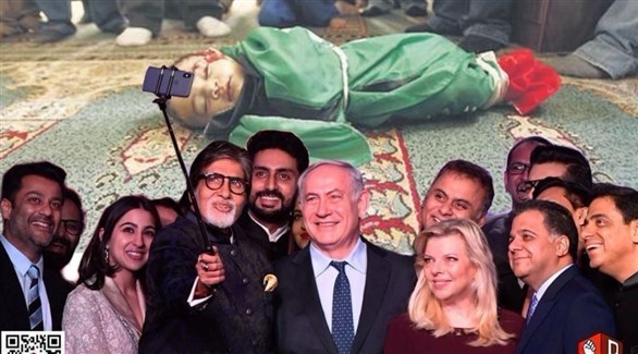 وكالات - الاقتصادي - تداولت عدة مواقع ومنصات التواصل الاجتماعي الفلسطينية اليوم الإثنين، صوراً مركبة وخيالية قام أحد الفنانين الهنود بتصميمها، رداً على السيلفي الذي التقطه رئيس الوزراء بنيامين نتانياهو مع نجوم السينما الهندية.