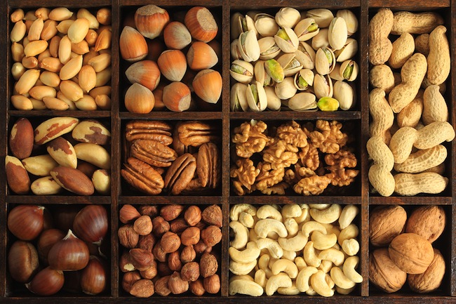 الجوز واللوز والفول السوداني غنية بفيتامين E المضاد للأكسدة. والجوز مهم جدا لصحة الدماغ لاحتوائه على أعلى نسبة من الأحماض الأمينية المختلفة.