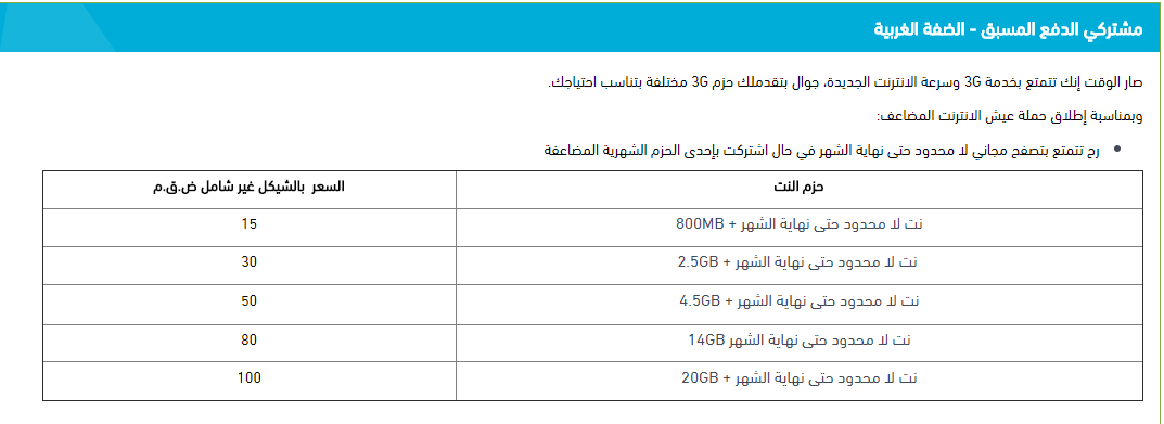 20 جيجا بت بسعر 100 شيقل.
