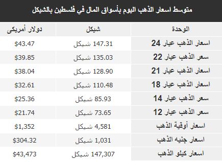 رام الله - الاقتصادي - جاءت اسعار غرام الذهب اليوم الجمعة في فلسطين لعيارات 18.21.22.24 على النحو التالي : -