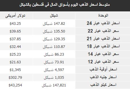 رام الله - الاقتصادي - جاءت اسعار غرام الذهب اليوم الخميس في فلسطين لعيارات 18.21.22.24 على النحو التالي : -