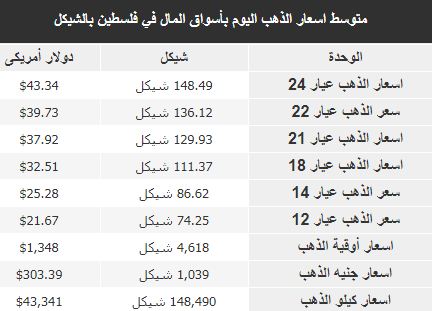 رام الله - الاقتصادي - جاءت اسعار غرام الذهب اليوم الجمعة في فلسطين لعيارات 18.21.22.24 على النحو التالي : -