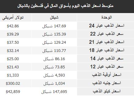 رام الله - الاقتصادي - جاءت اسعار الذهب في فلسطين اليوم الأحد لعيارات 18.21.22.24 على النحو التالي :-