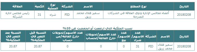 وتجبر الشركات، بالإفصاح للسوق عن التغيير الطارئ على ملكية كل من المطلعين في الشركة المدرجة، وتزويد الشركة المدرجة بالمعلومات التي يجب على كل منهم الإفصاح عنها.