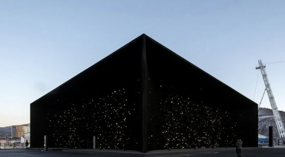وكالات - الاقتصادي - صمم المهندس المعماري، آصف خان، مبنى شديد السواد في دورة الألعاب الأولمبية الشتوية في كوريا الجنوبية، يبدو وكأنه قطعة من الفضاء بفضل تقنية الطلاء الفائقة الخادعة للعين الناظرة.