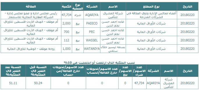 الثلاثاء.. 5 صفقات في تداولات المطلعين ببورصة فلسطين
