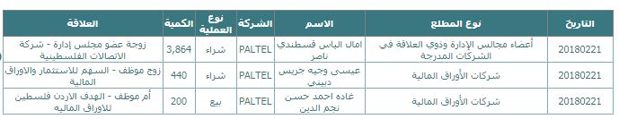 رام الله - متابعة الاقتصادي - بينت معطيات رسمية صادرة عن بورصة فلسطين، اليوم الأربعاء، أن 3 صفقات تداول (بيع وشراء)، تمت من جانب أفراد أو مؤسسات مطلعة على أداء الشركات، أو ذات علاقة بها.