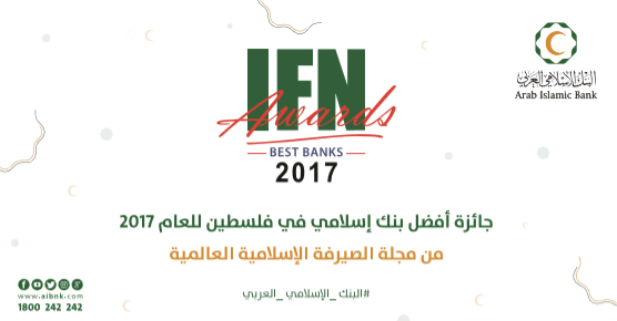 رام الله - الاقتصادي - حصد البنك الإسلامي العربي جائزة أفضل بنك إسلامي في فلسطين حسب مجلة Islamic Finance News – IFN ” " المختصة بتقييم البنوك الإسلامية، وقد أخذت المجلة بعين الاعتبار في تقييمها أن البنك الإسلامي العربي هو أكبر البنوك الإسلامية من حيث الموجودات المالية والتي تجاوزت المليار دولار، إضافة إلى أنه أكبر البنوك الإسلامية من حيث إجمالي الودائع. كما كان ملاحظاً نسبة نمو البنك السنوية في جميع الأصعدة والتي كان جلياً ظهورها في أداء فروع البنك المُميز والتي وصل عددها إلى 19 فرع في كافة محافظات فلسطين.