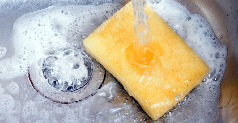 صحيح أن الإسفنجة تمتص سائل الجلي إلا أن ذلك لا يجعلها آمنة وخالية من البكتيريا. الأهم ألا تترك بقايا الطعام عالقة عليها وأن تغسلها دوماً بعد الانتهاء من الجلي.