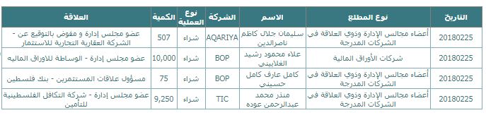رام الله - متابعة الاقتصادي - بينت معطيات رسمية صادرة عن بورصة فلسطين، اليوم الأحد، أن 4 صفقات تداول (بيع وشراء)، تمت من جانب أفراد أو مؤسسات مطلعة على أداء الشركات، أو ذات علاقة بها.