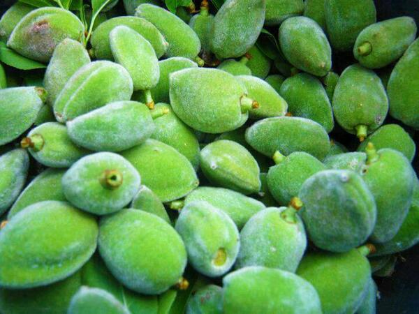 رام الله – الاقتصادي – سجود عاصي - مصفوفة حباته بانتظام على شكل مخروطي، وبلونه الأخضر وملمسه المخملي ومذاقة الخفيف المائل إلى الحموضة، يجتاح اللوز الأخضر الأسواق الفلسطينية في هذا الوقت من كل عام.