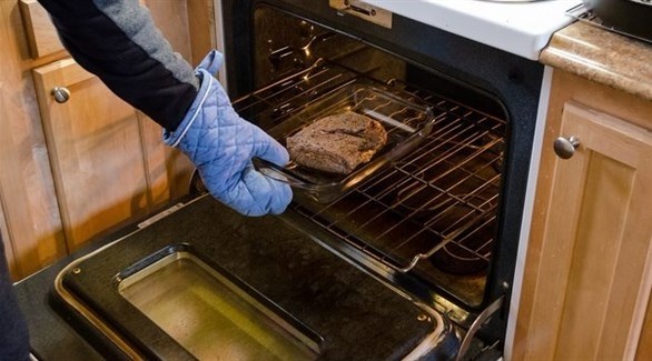 3- إذا أردت تفقد وجبة الطعام أثناء عملية الطهي، يفضل إخراج الصينية بالكامل من الفرن، بدلاً من فحصها وهي في الداخل.