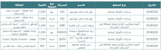 رام الله - متابعة الاقتصادي - بينت معطيات رسمية صادرة عن بورصة فلسطين، اليوم الأربعاء، أن 6 صفقات تداول (بيع وشراء)، تمت من جانب أفراد أو مؤسسات مطلعة على أداء الشركات، أو ذات علاقة بها.