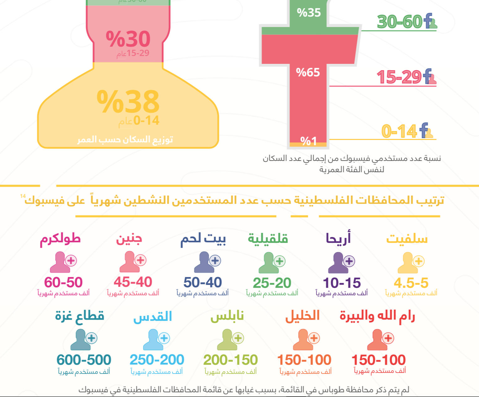 واشار التقرير ان محافظة الطوباس لم تذكر في التقرير، بسبب غيابها عن قامة المحافظات الفلسطينية على فيس بوك.