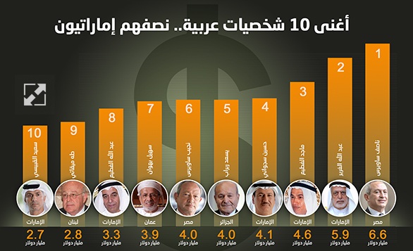 ويحدد هذا الإنفوغراف أول 10 شخصيات عربية في قائمة فوربس، ألأغنياء العرب لهذا العام.