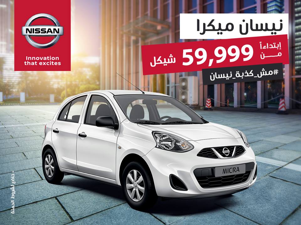 وتتيح الحملة شراء سيارة نيسان ميكرا ب 59,999 شيقل مع امكانية التقسيط، وشراء سيارة قشقاي بحلتها الجديدة كليا بدفعة أولى تبدأ من 1000 دولار فقط، ودفعة شهرية 1,999 شيقل مع كفالة 3 سنوات او 100.000 كم ايهما اسبق.