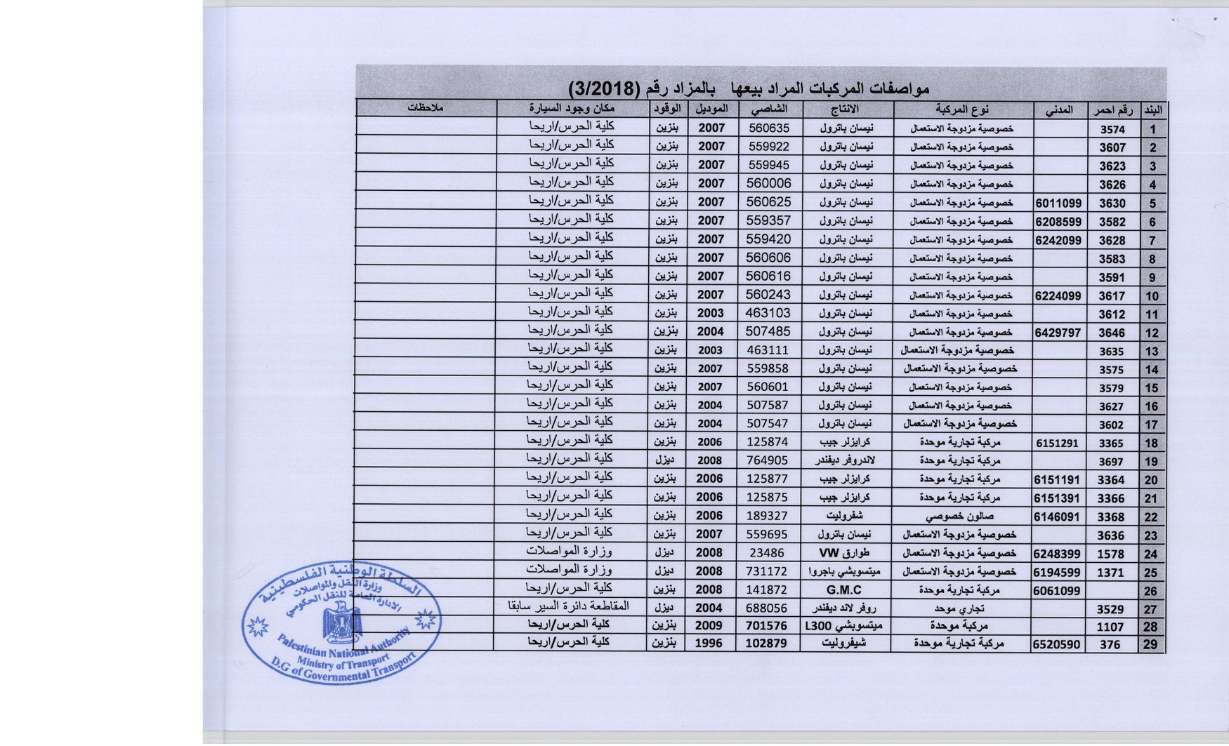 رام الله - متابعة الاقتصادي - عرضت الحكومة الفلسطينية عبر وزارة النقل والمواصلات، نحو 90 مركبة تتبع لمؤسسات مدنية وأمنية للمزاد بالظرف المختوم.