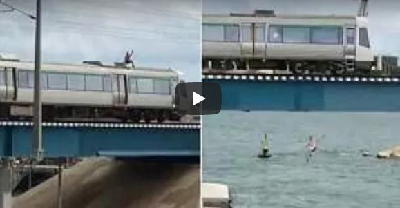 وكالات - الاقتصادي- تداولت العديد من منصات التواصل الاجتماعي تسجيلاً مصوراً يظهر أحد الشبان وهو يخاطر بحياته عبر القفز من فوق قطار مسرع باتجاه المياه.
