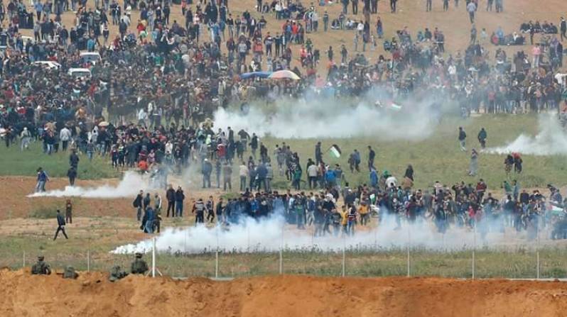 ويتظاهر آلاف من ابناء شعبنا في قطاع غزة بشكل يومي منذ 30 مارس/آذار الماضي في 5 ساحات اعتصام، نصبت بها خيام على بعد مئات الأمتار من السياج الحدودي الفاصل شرق محافظات القطاع الخمس.