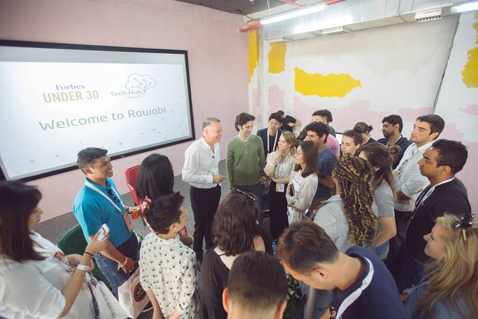 روابي - الاقتصادي - نظمت  مجلة "فوربس" العالمية بالتعاون مع مجمع روابي لتكنولوجيا المعلومات، مؤتمراً ضم 120 من رياديي التكنولوجيا العالميين والمحليين دون سن الثلاثين، وتم عقد المؤتمر في قاعة السينما وسط الـ "كيو سنتر" في مدينة روابي.