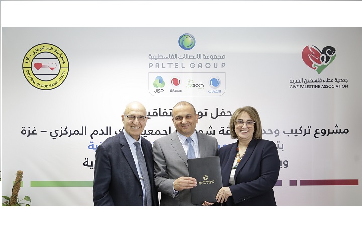 رام الله - الاقتصادي - وقعت جمعية عطاء فلسطين الخيرية ممثلة برئيس مجلس الادارة السيدة رجاء ابو غزالة وبحضور الرئيس الفخري للجمعية الدكتور نبيل شعث ومجموعة الاتصالات الفلسطينية ممثلة بالسيد عمار العكر الرئيس التنفيذي لمجموعة الاتصالات الفلسطينية اتفاقية لتنفيذ مشروع تركيب وحدات طاقة شمسية لجمعية بنك الدم المركزي في قطاع غزة.