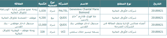 رام الله - خاص الاقتصادي - بينت معطيات رسمية صادرة عن بورصة فلسطين، اليوم الخميس، ان4 صفقات تداول (بيع وشراء)، تمت من جانب أفراد أو مؤسسات مطلعة على أداء الشركات، أو ذات علاقة بها.