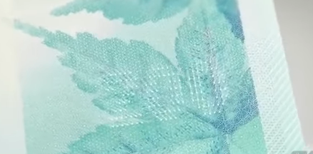 ومن العلامات الفارقة التي تحدث عنها علاء ابو فخيدة، في كشف العملة المزيفة، وجود خط باللون (أزرق - وبنفسجي) على ظهر الورقة.