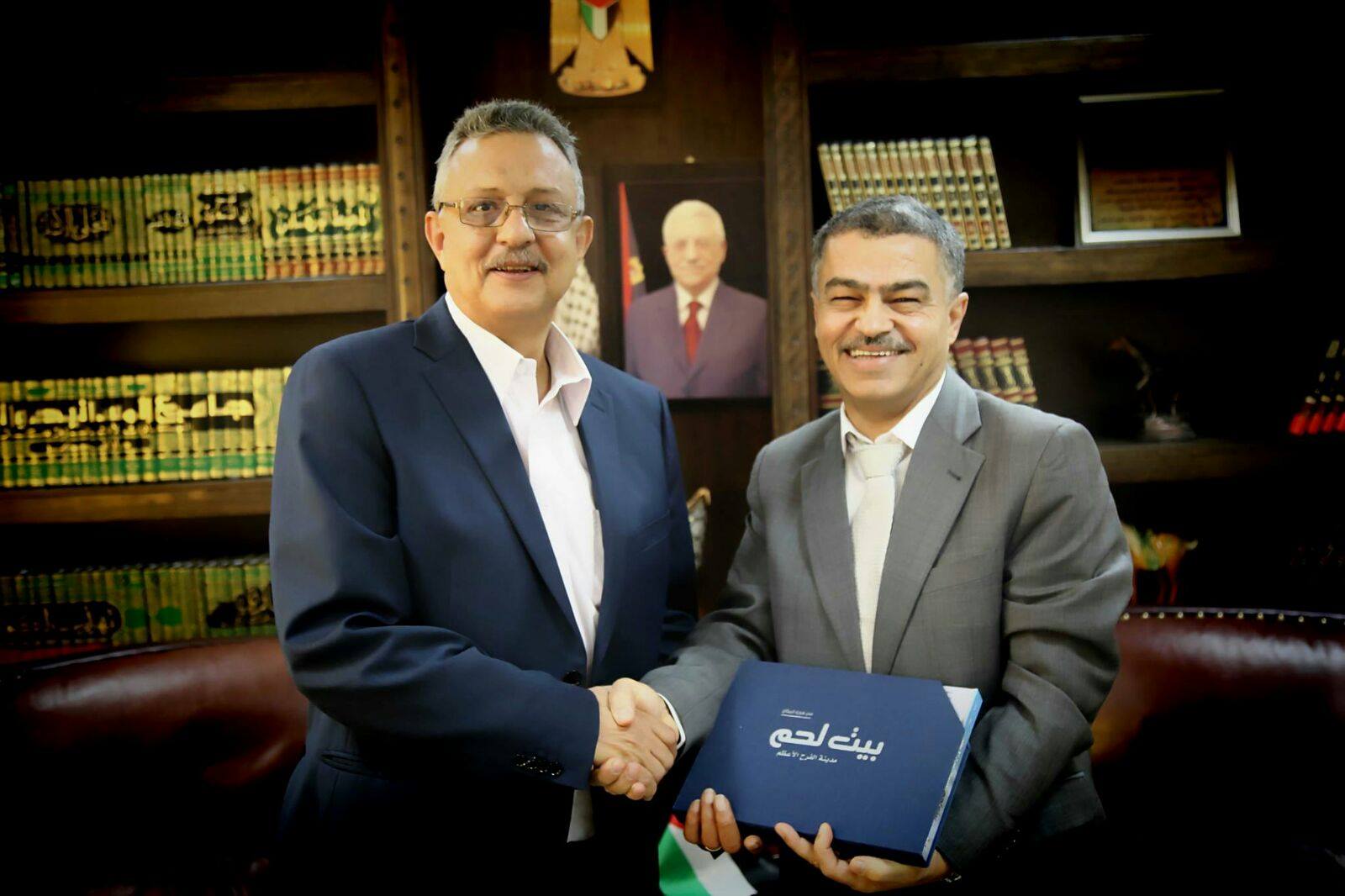 وتأتي هذه الزيارة ضمن برامج الزيارات التي يقوم بها البنك الإسلامي العربي لمؤسسات المجتمع المحلي الشريكة، وفي نهاية الزيارة أهدى سامي صعيدي كتاب عن بيت لحم لعطوفة عصام أبو بكر.