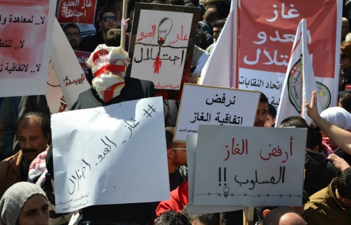 وكالات - الاقتصادي - اكدت النقابات المهنية في الأردن رفضها القاطع لاتفاقية الغاز الموقعة مع الجانب الإسرائيلي ومشروع مدّ أنبوب الغاز من الأراضي الفلسطينية المحتلة وصولاً إلى أراضي المملكة في المنطقة الشمالية.