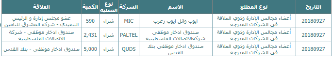 رام الله - الاقتصادي - بينت معطيات رسمية صادرة عن بورصة فلسطين، اليوم الخميس، ان 3 صفقات تداول (بيع وشراء)، تمت من جانب أفراد أو مؤسسات مطلعة على أداء الشركات، أو ذات علاقة بها.