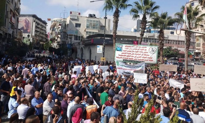 وخرج اليوم آلاف الموظفين والعمال في القطاع الخاص الفلسطيني، بمظاهرة وسط مدينة رام الله للمطالبة بتعديل بنود على القانون الحالي.