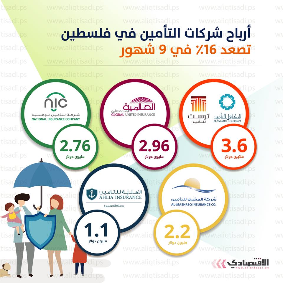رام الله - متابعة الاقتصادي - صعد صافي أرباح شركات التأمين المدرجة ببورصة فلسطين، بنسبة 16% على أساس سنوي في أول 9 شهور من العام الجاري 2018.