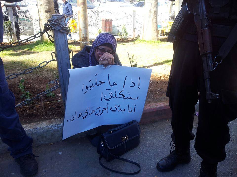 "إذا ما حليتوا مشكلتي، أنا بدي احرق حالي هان"، تلك هي وسيلة الدفاع التي تمكنت الشابة المريضة بالتصلب اللويحي عهود مرقطن من فعلها، حملت لافتة بخط يدها وجلست بينما يتجمهر المواطنون حولها.