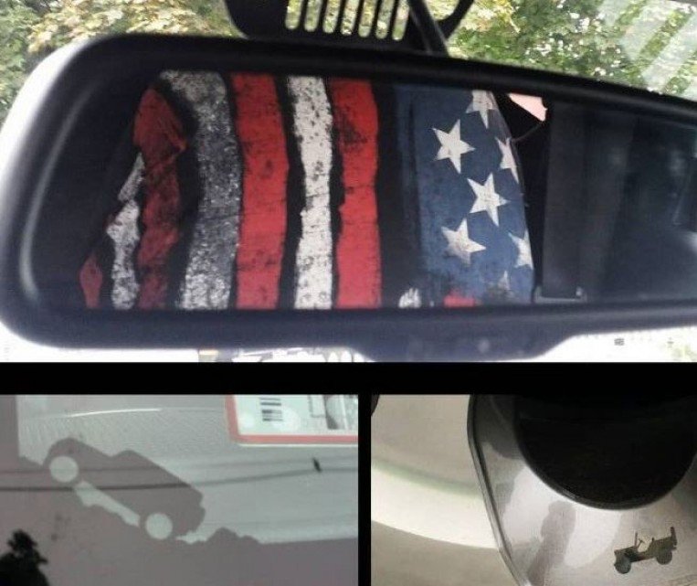 بينما تحمل كورفيت شعار صغير لها على زجاجها الخلفي وتمتلئ طرازات جيب بشعار شبك العلامة الأمريكية المميزة الأمامي لسياراتها خلال الحرب العالمية الثانية.