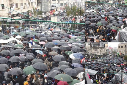 رغم شدة الأمطار والطقس البارد،فإن العديد من الحافلات التي تقل مواطنين من محافظات الشمال وصلت إلى مكان الاعتصام على دوار المنارة برام الله للمشاركة في الاعتصام.