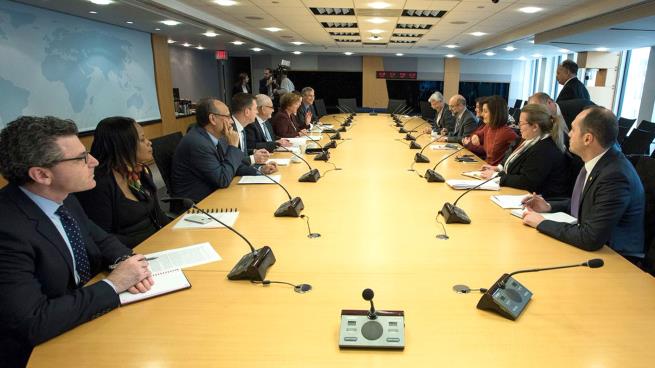 وشارك رئيس الوزراء والوفد الاقتصادي المشارك في جلسة حوارية مع عدد من نواب رئيس البنك الدولي والمعنيين في ملف الأردن، تضمنت الحديث عن أبرز المشاريع التي يمولها البنك الدولي في الاْردن والمشاريع المستقبلية.