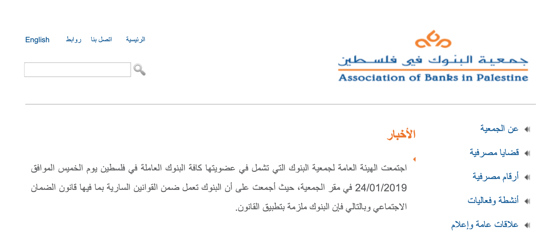 واجتمعت الهيئة العامة لجمعية البنوك في فلسطين، وأجمعت على أن البنوك تعمل ضمن القوانين السارية بما فيها قانون الضمان الاجتماعي، وبالتالي فإن البنوك ملزمة بتطبيق القانون.