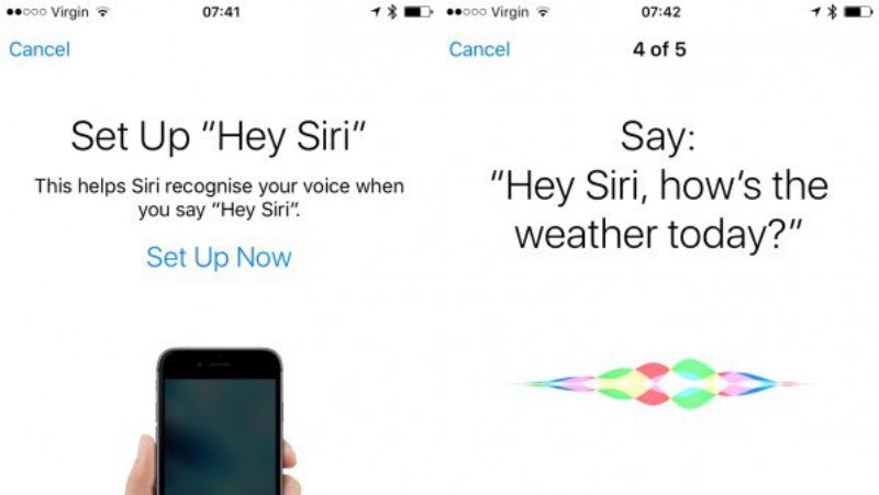 وعند التوجه إلى إعدادات سيري في النسخة الذهبية GM من نظام iOS 9 يعرض النظام معالج التدريب الذي يتكوّن من خمسة خطوات ليقوم المُستخدم بنطق الجملة وتقوم سيري بتخزينه للتعرّف عليه لاحقًا.