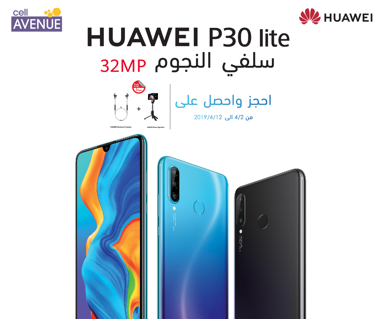 يذكر أن P30 Lite سيظل متاحاً للطلب المسبق حتى 13 أبريل وبحزمة مميزة تحتوي (سماعات بلوتوث، عصا سلفي tripod لاسلكية مميزة).